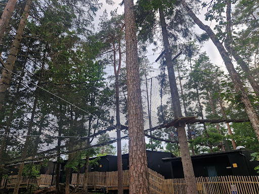 The area is very clean and kids have a lot of fun climbing and walking in the ropes, can be loud at night. We hit our heads several times because of the bunk bed on the way to the terrace. The cabins are very cosy and super practical, shower outside, bathroom inside. We took a small car cooler box with a car/wall adapter and it was really useful, you can also rent one. We also took a small camping burner for making simple foods for breakfast. There's a place to get foods and drinks in the area but didn't...
