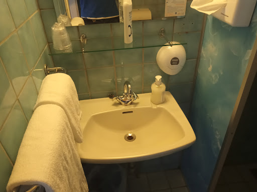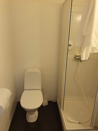Romma er håplaust utdaterte. Vi prøvde to og ingen av dei var spesielt godt vaska. Eldre teppegulv, ein gamal og rusten dusjvegg med eit dusjforheng, ein rusten varmeovn og gamle sprukne fliser tyder på at her har det ikkje skjedd mykje på veldig lang tid. Fleire tiår kanskje.