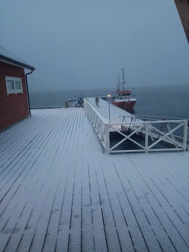 Read moreIt is located some 300 m from the supermarket Rema and is right on the sea front. We enjoy the view from our cabin, looking out at the Lnyngenalps and the harbour. The sunset was superb as the weather was good. It has been snowing quite a bit and I am waiting for the sunrise (hopefully). The owner provided us with BBQ facilities, free of charge, in a small wooden cabin near our own cabin. It seated comfortably our group of 12. He started the fire and we brought along the food and drinks. Wifi is available in a main cabin next to our cabin (sleeping six in three rooms) and is reachable from our own cabin if we are seated close...