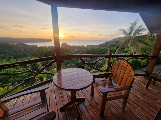 Read moreThis is a gem. High atop a hill and very secluded. Beautiful vistas of the Rock Islands and breakfast brought to your room every morning made it feel like a paradise. Great breakfast choices: French Toast, pancakes, omelette, eggs, breakfast meats ( try the hot dogs or chicken nuggets), and fried rice that was yummy. We had the deluxe bungalow and it accommodated our family of 4 with lots of room. The room itself is comfortable and woody and very comfortable. We loved the space and it's ambiance. The bed was amazing! The bathroom was large with a rain shower. The property is steep, not going to lie, but that is what gets you the view. The golf cart will take you from the main office to your bungalow. The turn from the road could be easy to miss as it's right in a curve. There are old WWII guns in the hill above and some great war relics to see. The frogs and geckos and tropical plants are a delight. Staff was super friendly and helpful. Very knowledgeable and curious about our plans. Made arrangements for us to use sister hotel pool! Highly recommend for families and couples who don't mind something off the usual...