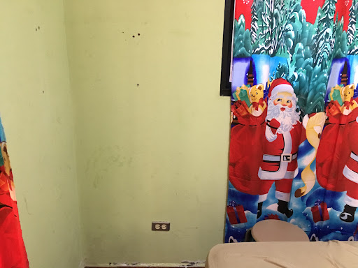 Walls in the room were dirty. Room was too small. There were holes in the walls and in the ceiling in the room (see photos). Pans and pots are scratched. Dishes and cups need to be replaced.