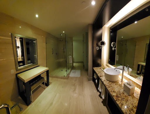 Lobby: This was a bit odd because where we were dropped off is basically downstairs from the lobby. I think because it was the entrance to the casino. Anyway, you take the elevators up and the lobby is righr there. The lobby is quite big and would accommodate probably a small busload of folks. There are a couple seating options. The staff were very pleasant and spoke very good English, which I appreciated as my Spanish is horrible.