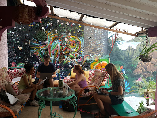 Read moreStayed here for 5 nights while doing a Traveling Spanish School. I titled it "A rose between two thorns" because this beautiful and charming little hostel is surrounded on all sides by high rise apartment houses. It is colorful and cheary. Friendly staff, came with light breakfast each morning consisting of various juices, filtered hot/cold water, white bread, peanut butter, butter, jelly. They provided a toaster also. The hostel is secured by wall and accessible by locked entrance only. Rooms are small but certainly adequate. My room had a fan also. Shared shower was large, clean and adequate. Outside seating area and also has a climbing wall on site. On Friday nights they cook pizza in an outside brick oven. Kitchen area is large with areas for personal items. Has washer/dryer on site for a fee. Free internet and access is very good and also speed is very good. Located only a couple blocks to a supermarket, restaurants, and a park. Overall it was great for my first...
