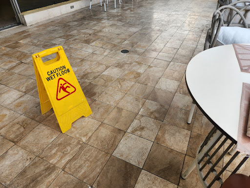 The Hotel buffet restaurant was old, and the furniture was beaten up. The only bright spot was the two servers. The hostess looked on the outdoor patio, saw all of the empty tables, and decided to sit me at the one table right next to a puddle of water and a "slippery when wet" sign. blinking Yes, some tables needed to be cleaned, but I guess that was too much work. Not only was the table next to a puddle of water (photos attached), but the (clearly 20-year-old) placemat had a permanent stain. Just ridiculous for a Waldorf Astoria hotel. Also, the area where you order eggs should have some type of spit barrier since guests are talking. But again, the place is old.