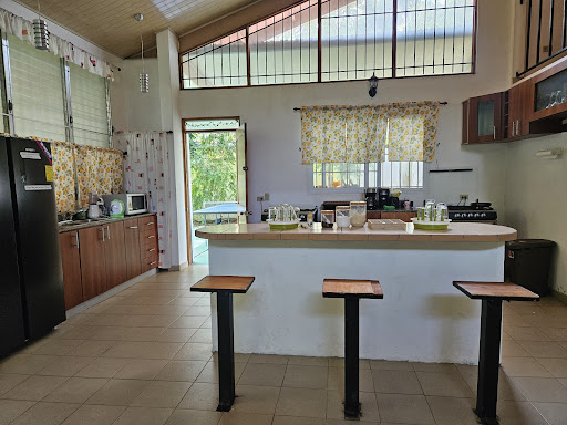 Poco espacio para sentarse a comer para la capacidad de hospedaje que tiene, todo el. Uy bonito y está muy bien, salvo el sofá que es...