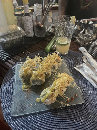 The place is run by two fantastic people, Adriana and José. There is a little bar/restaurant on the property, but it's a but adhoc, if they're on site then the bar is open, but they are sometimes off surfing, exercising, or out running errands themselves. The breakfast is simple fare, but delicious and they have a pretty remarkable presentation for a continental breakfast. There's also a Mediterranean breakfast option which depends on if they have fresh fruit on hand. Either way, the food is terrific, the coffee is strong, and the price is reasonable.