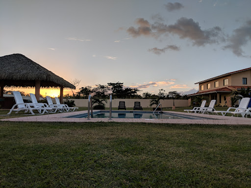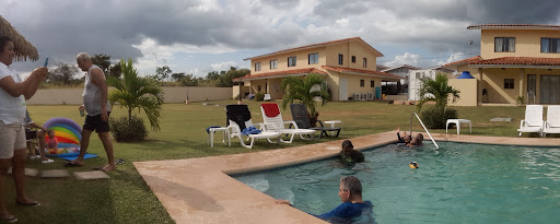 Hasta 7 personas, un cuarto principal con baño y walk-in closet y televisor, dos cuartos con dos camas, un baño arriba para los cuartos, todos con aire y abanico. Medio baño abajo para visitas, sala con televisor y aire, comedor de 6 puestos, cocina con mini horno, microondas, refrigeradora, estufa, cuarto de lavado (no incluye lavadora ni secadora, tiene Tina y calentador de agua), cuarto de empleada con abanico y su baño, pequeña terraza trasera, asador en cada apt (son 3 duplex) piscina de buen tamaño, la mantienen limpia, rancho grande con asador, regaderas...