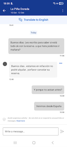Read moreUn desastre. Reserva hecha hace meses. UN DIA antes les escribo para confirmar que está todo ok y horario de llegada, su respuesta: "Buenos dias.. estamos en refacción no podré alquilar.. porfavor cancelar su reserva." No fueron capaces de avisar por propia iniciativa...