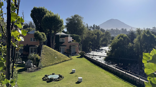 Mu husband and I spent 3 nights here, our first hotel of our Peruvian holiday. The garden in particular and the premises in general are pretty and well looked after. It’s lovely to look over the river and having the vulcano in the background. Upon arrival a complimentary drink to have at the bar is offered. Breakfast was very good too: with the possibility of ordering up to 3 plates (sweet and savoury). The room was spacious, bright and the bed was very comfy! I’d say it’s a bit noisy for me being a lightsleeper as the bridge nearby gets busy with cars and mopeds beeping from early in the morning and the window did not block out the noise much - although it didn’t prevent me from sleeping or wake me up in the middle of the night to be fair. Cleanliness standards of our bedroom weren’t the highest: some visible stains on the sofa, floor got the soles of the slippers provided black, the bathroom got easily steamed (due to poor ventilation) and felt damp after each shower. Also no small table nor chairs to enjoy the small...