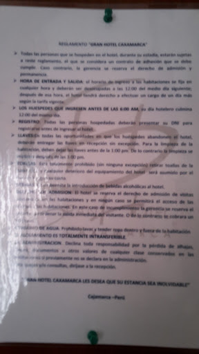 Read moreUn hotel que si recomiendo al 100% por la ubicación, trato e instalaciones. Esta a 8 minutos de la plaza de Cajamarca, ubicado muy cerca al mercado donde encontrarás caldos y desayunos típicos de la zona a precios accesibles, el hospedaje para cama matrimonial es de S/ 50.00 tiene vista a la calle, agua caliente, Wifi, y los cuartos son muy abrigadores. Además si deseas conocer los principales atractivos turísticos de Cajamarca, cuenta con tours que te recoje en el...