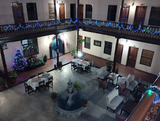 Stayed for one night as part of a three-week birding trip to North Peru.||This is a beautiful old hotel with carved wooden doors and panelling and a fountain in the centre of a comfortable communal area. The room was pleasant with thick, firm mattresses and good quality bedding. The shower heat was good and the flow reasonable. There was also hot water in the basin.||The staff were all very friendly and we enjoyed a lovely brandy-based welcome drink at the bar (although service was a bit slow). Our evening meals were all good and included trout in garlic sauce, chicken and spag' bol'. The buffet breakfast was of equal quality and included lovely rolls, good coffee, fruit and cheese etc.||WiFi was good.||The location is excellent, close to the central square in the historical area. ||The price for al this was pretty reasonable....
