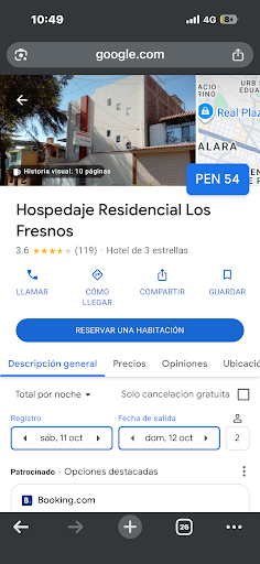 HORRIBLE EXPERIENCIA. PÉSIMO TRATO a los huéspedes, solo fingen ser amables al inicio. SON UNOS APROVECHADOS, no respetan el precio de la habitación, hice una reservación por 60 soles la noche y me la aceptaron, hasta me mandaron mensaje de confirmación, pero cuando llegué, me dijeron que ya la habían alquilado y me pidieron 80 soles por otra habitación y me pidieron que cancele la reservación de la app. Luego, me di cuenta que la habitación que me dieron era la misma que la que cobran de 50 o 60. Solo se quisieron aprovechar del apuro que tenía. Ya me tuve que quedar por en cansancio. La cama no era para nada cómoda, muy dura. No es nada parecido a lo que muestra...