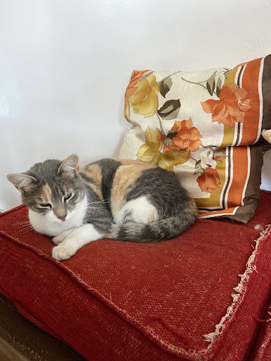 The Guesthouse itself is a spacious home with various guest rooms and common areas. The Kitchen has everything you need - a gas stove, fridge and freezer, a microwave, running water, and all the necessities to prepare a meal. The livingroom is cozy with a comfy couch and a dining table. There are also yoga mats available to use. On the patio there are 2 hammocks you can use to soak up the sun. The bathroom that is closest to my room is fairly private as it is shared with only one other room. Oh, and there is a house cat - she is super sweet!