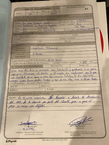 Pdt: Pidan el libro de reclamaciones ante cualquier inconveniente como este, ellos me devolvieron el dinero que pague por una noche y creen que con eso lograrán arreglar algo del pésimo servicio que tienen🤮.