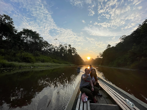 I am generally more of a stay at home type of person but like to get out of comfort zone once in a while. I’ve always wanted to see the Amazon river and exotic animals of South America, so when my friend recommended this jungle lodge in Peru it seemed like the perfect trip for me to finally experience the Amazon rainforest. I have to say I was a bit nervous to travel alone to a place I’d never been before but, it was incredible! I found it to be an adventure-seeker's paradise. From thrilling jungle walks to serene canoe rides, every moment was a wild discovery. ||The sunsets were breathtaking, setting the perfect backdrop for unforgettable memories. Highlights were having monkeys hang out on my shoulders while feeding them fruit and eating pirañas after catching them with my guide! I the lodge served buffet style 3 meals a day – the food definitely added a flavorful touch to this epic journey and allowed me to focus on the experiences. My favorite food was definitely the fried piranha! Surprisingly, my new favorite fish to eat. The only thing that I wish I had done differently is stayed 3 nights instead of 2. I had a blast but wish I could have stayed longer to really embrace the serenity of the jungle. Can't wait to embark on my next...