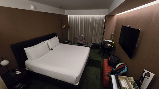 As a Gold member I was upgraded from a queen to a king room on the 5th floor. I also requested a tour of the hotel. The rooftop bar is still not fully opened (as of June 1) to the public, just hotel guest. The chairs in the room are SO cozy. The two free waters are in glass and not plastic.