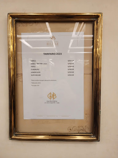 Shady porters! I am writing to post an official complaint against the Gran Hotel Bolivar. My wife and I are tourists who wandered innocently into the Gran Hotel Bolivar on Tuesday evening 07/05/19. We were looking for a taxi to Miraflores. Front desk receptionist Mr Victor was fantastic. He took initiative, used his personal mobile phone to find us a taxi to Miraflores via the Easy Taxi app. He got us a bid for 23 Soles. Unfortunately the Easy Taxi driver cancelled on us. During this time, the front entrance porter, Mr Carlos 'found' us a yellow taxi on the street. We were quoted 34 Soles. But were told by hotel staff that 30 Soles was an acceptable tariff. So we got into the yellow taxi, but noticed at the last moment the yellow taxi driver giving a 'kickback' of some coins back to Mr Carlos. This is what I am complaining about. Mr Carlos is a perfectly nice and friendly chap. However from our perspective, it almost seems like he (and thus the hotel, as he represents the hotel) is preying on innocent and vulnerable foreign visitors in their hour of need. Tourists in a foreign land, unable to fully speak the local Lingua Franca, in their hour of need, find themselves having to pay an artificially inflated fee, just to line the pockets of hotel staff in a rather shady and disreputable manner. I urge hotel management to take action. I am sure the Gran Hotel Bolivar is a superb hotel. But Mr Carlos' actions this evening directly question the integrity and thus values of the hotel and all the staff at the hotel. Thus I urge all fellow tourists to boycott and avoid the Gran Hotel Bolivar at all costs as I find their values and attitude to integrity and honesty leaves something to be desired. I do hope hotel management is able to impress on their staff the value of maintaining the trust of tourists and how hurtful it can be, breaking the trust of new visitors to the fantastic land...