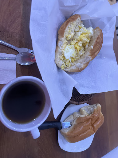 Breakfast is a couple scrambled eggs, a couple rolls, and coffee/tea. Coffee is weak. This was enough to get me going.