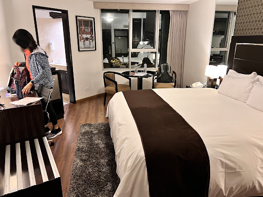 We were there for a large medical conference with a group. The hotel is well located (albeit the fact that traffic in Miraflores is absolutely horrible and most Uber drivers avoid this particular area like the plague - on average 3-4 uber drivers would cancel ride requests). The hotel is by and large well maintained, service is good, the staff from the front desk to the restaurant is amicable, service oriented and try hard. Rooms are spacious, bed quality is good. They do need to offer different option pillows, all our rooms had huge hard pillows and everyone in our group complained. Food was decent (lunch and dinner were OK), breakfast has a lot of options which was a plus, just don't try ordering a fresh omelet (3 days in a row they either didn't get our orders right, took 1/2 hour or simply forgot). Overall for a short stay or for a corporate event, it's a decent choice. One BIG advice - ask for a room on the back or side of the hotel, avoid rooms facing the entrance/front as there is too much traffic and party noise at night (noise from major bars and nightclubs up the street negatively...