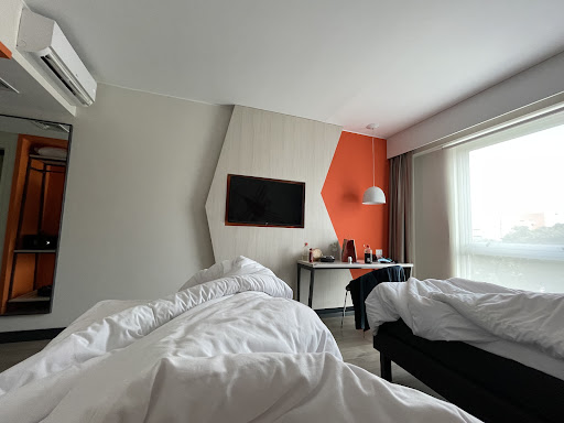 Read moreViaggio spesso e raramente sono stato così male in una struttura ricettiva. Iniziando dal principio, decido di prenotare presso questo hotel forte della reputazione della catena IBIS. Prima del soggiorno decido di contattare la struttura per chiedere cortesemente di organizzare un transfer dall’aeroporto all’hotel. MAI AVUTO RISPOSTA. Atterro a Lima, prendo un taxi e raggiungo l’hotel. In reception il signor LUIGI. Dopo circa 30 min di check in (negli altri hotel in 10 min si faceva tutto) chiedo come mai non avessero risposto alla mia gentile richiesta di transfer: nessuna risposta. Camera molto basilare senza nessun tipo di confort aggiuntivo. Non frigobar né cassaforte. Era ora di pranzo quindi decidiamo di mangiare al ristorante dell’hotel. Scelta sbagliatissima. Prendo un wrap di pollo fritto con insalata e salsa yogurt. Dopo circa 6 ore inizio ad accusare una intensa gastroenterite da verosimile tossinfezione alimentare (sono un medico) con abbondante diarrea acquosa. La||Mia compagna chiede spiegazioni ed aiuto in reception per avere quantomeno una tisana per reidratarmi. Ci vengono date due tazze di acqua calda con due bustine di camomilla. Credevamo fossero gentilmente offerte, visto l’accaduto, invece la tazza d’acqua calda ci viene fatta pagare 14 Sol l’una. Chiediamo un cuscino aggiuntivo più sottile in quando quello presente era altissimo. Risposta della reception: non possiedono cuscini aggiuntivi. Per fortuna ci viene almeno concessa una coperta in più visto che anche l’aria condizionata calda in camera non funzionava (nel frattempo mi era salita anche la febbre). Dopo una nottata in bianco e visto il livello così tanto basso di soggiorno decidiamo di andar via una notte prima (avevo prenotato per due notti) per soggiornare in un hotel di qualità decisamente migliore. Alla reception c’è, di nuovo, il signor LUIGI il quale al momento del check out non si accorge nemmeno che stavamo andando via un giorno prima! Nessuno in reception aveva oltretutto comunicato ai suoi colleghi quanto mi era successo la notte prima quindi mi hanno liquidato senza chiedermi nemmeno come stessi. Quanto accaduto lo reputo molto grave ed inaccettabile per una catena alberghiera come IBIS. Mi ha decisamente rovinato la fine della vacanza ed i miei ultimi giorni a Lima. Nonostante gli allettanti prezzi evitare questo hotel come la peste, ne va della vostra salute...