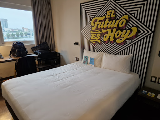Read moreLocation is new and clean. It is conviently located near a metropoliano station but there is not much around the hotel. Since it is a bussiness district we were told that all resturants close by 10pm. The rooms are extremely lacking. The design of the freestanding sink and faucet is not well considered and alot of water falls on to the counter. The rooms are extremely small and there is only space to open one suitcase. There is space for a desk which is a good amenity but I do wonder is that might be better to put more luggage space. I would only recommend this for single occupancy.