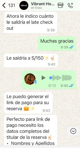 Hubo un intento de estafa por parte de los administradores del departamento. Mi reserva fue a través de booking y estuve alojado del 6 al 8 de enero del 2025. Mi vuelo salía a las 7pm de Lima rumbo a Madrid, tenía la mañana y parte de la tarde libre y necesitaba dejar mis maletas en algún sitio seguro, al no ser un hotel o un hospedaje, no te pueden brindar este servicio, con lo cual, les pedí amablemente la posibilidad de hacer el check out 3 horas más tarde de la hora de salida estipulada... por esas 3 horas adicionales me quisieron cobrar 150 soles... y la habitación por día costaba 133 soles. Con rapidez intentaron pasarme el enlace para el pago. Adjunto el whastapp.