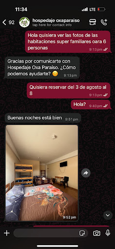 Pero cuando llegamos el 4, nos encontramos con que NO HABÍA NINGUNA HABITACIÓN RESERVADA. El encargado empezó a dar excusas absurdas diciendo que como éramos 4, no nos podía dar la de 6 (¡cuando ya le había dicho que iba a pagarla igual!), luego que no tenía cuartos disponibles, después que “tal vez se desocupa uno a las 10 am”, luego que “quizás al mediodía”… claramente no tenía nada asegurado y solo nos estaba paseando.