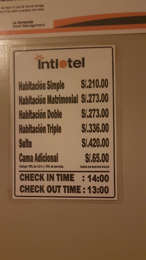 Read moreI highly recommend this hotel because It has everything you need for an stay in Piura: a central location, a modern building , reasonable price and a wonderful staff that goes above and beyond to make your stay comfortable. As of to date, my family has stayed in this hotel twice. We really appreciate that the hotel has accommodated all our needs. The main strengths of this hotel is that it is located downtown but thanks to its modern construction you do not feel the noise. Additionally, we really enjoy the nutritious breakfast and amenities. The staff makes you feel special. We couldn’t believe that the waiters remember our party after three years. ||Thank you to all the staff! We will definitely will stay at Intiotel in our next...