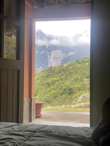 Man muss Mario für diese Unterkunft und den Service einfach nur Komplimente machen. Die Unterkunft liegt einen kleinen Fußmarsch vom Dorf Cocachimba auf dem Pfad zum Gocta Wasserfall entfernt. Die Lage ist perfekt, weil man von der Terrasse des Zimmers aus einen unfassbaren Blick auf den Gocta Wasserfall hat. Diesen Ausblick kann man also den ganzen Tag über genießen, sei es beim Frühstück, entspannen, arbeiten (denn das Wifi ist ebenfalls sehr gut) oder beim Dinner. Mario ist sehr nett, spricht Englisch, hilfsbereit, zuvorkommend und kocht verdammt gut. Ich kann die Sauerteigpizza zu 100% empfehlen. Must try! Die Zimmer sind sehr geräumig, warmes Wassern, das Bett sehr bequem und es ist nicht zu kalt in den Zimmern. Perfekt und ausreichend ausgestattet. Der Service ist wirklich außergewöhnlich. Durch meinen Nachtbus konnte ich problemlos spät auschecken und Mario hilft zudem bei der Taxibestellung. Ich kann die Unterkunft nur...