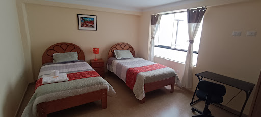 L'accueil etait particulièrement bon. Ruth est tres sympa et toujours disponible pour aider et/ou fournir des informations. Le rapport qualité-prix est excellent, le meilleur que j'ai eu au Perou La chambre était propre et spacieuse avec 2 lits confortables (rien que pour moi). Elle etait plutot bien equipee, avec table de chevet, prise a cote du lit, grande armoire, petite table et chaise Le wifi est tres bon, aucun souci Le logement est super calme, je n'ai entendu aucun bruit, ni a l'exterieur, ni interieur, ce qui est plutot rare au Perou et tres appréciable. Le batiment est sur plusieurs etages, j'etais au 5e, l'étage est partagé avec seulement 4 chambres et je n'ai jamais été dérangé par d'autres clients. La douche était partagee mais elle etait tres propre, j'etais peut-etre le seul a l'utiliser. D'autres chambres ont une douche privative, a vous de choisir en fonction du prix et de vos préférences. L'eau etait chaude et avec une bonne pression. Un distributeur de gel pour se laver les mains est egalement disponible. Les serviettes et savons sont également fournis. Il y a egalement une partie commune avec cuisine equipee, coin salon avec TV et table a manger, c'est tres pratique.