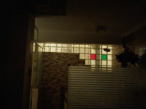 Wall around the Jacuzzi was glass bricks. Which lets in light from the room next door.