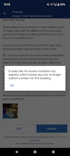 Read moreI stayed here two nights ago and they will not allow me to submit my review on booking.com