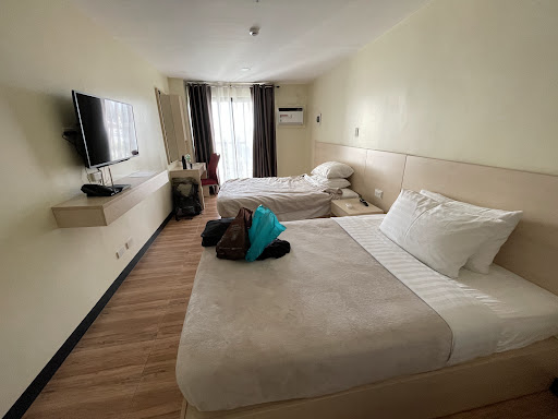 Read moreWe had an overnight stay in this hotel and it was good. We booked the room with a balcony on a promo rate. The room is good for two but the 2 beds can accommodate 4. The room was big enough and it was clean. The linens were very clean, nice pillows, and clean bathrooms. Good wifi connections. It was also nice that hot and cold water dispenser is available just outside the rooms. Staffs were kind and pleasant. Upon checking in you have to sign some docs stating penalties for linen and bed stains and additional charge for extra hours. We are very careful while eating some take home foods but they were considerate of unintentional extra minutes or an hour. Their resto is just on the first floor in case you want to eat but lazy to venture outside. The hotel is walking distance to bus station, Session Road, SM, Burnham Park, and night market, so very easy if taxis are hard to find. Worth mentioning also is the outlet store at the ground floor of the hotel building that sells imported chocolates, goods, and other stuffs in discounted prices. Wasn't able to take some pics but overall we had a nice stay...