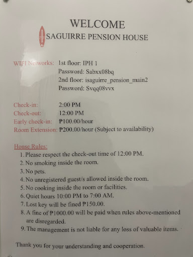 Exceptional staff here. From the moment you walk through the door you can see the level of care and detail the staff takes into into this place. My booking here was made last minute for 5 days, my arrival was around 12 am. The staff doesn't have 24 hour reception, but they waited up for me. I've stayed at places across the Phillipines and paid 3x as much and the level of cleanliness is subpar at best, the ac doesn't work, the bathroom is flooded slightly. Here everything works the way it should. Cold aircon, hot water, bidet toilet. There is also hot water outside the rooms for coffee. The place has a rooftop with great views of people surfing, the town, and of the mountains. Location wise, you are a very short walk from the beach and surfing, and it's quite easy to get around town with friendly trike drivers. The family that runs this place is very kind and go out of there way to make you feel like you belong. Often I would talk with the husband and he would show me the best places to eat, or tell me about the town. Him and his wife would check up on me and ask about my stay. When it came time for me to leave, the same man that waited up for me late also woke up at the early hour of 4 am to take me to the bus terminal. He also had a cute and happy dog that accompanied us. The family here that runs this place is genuine about providing a comfortable and relaxing place for its guests. Thank you Isagurrie's...