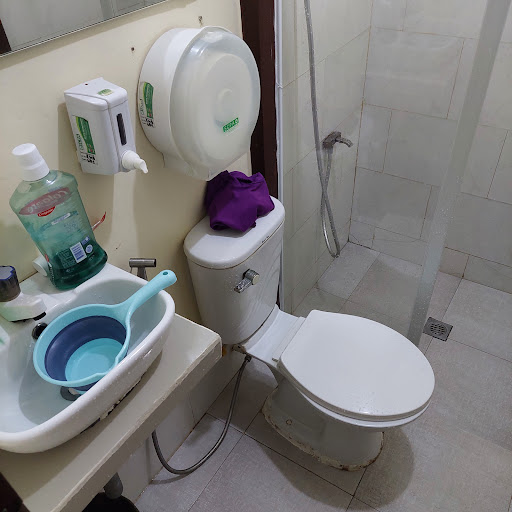 No slippers provided in the room. But they have shampoo and body bath in a dispenser. No toothbrush and toothpaste, just towel. Another thing is, the smell of water is rusty and smells like imburnal. No exaggeration. If you know the smell of stocked water, that's the smell. Also, just a friendly reminder, close your mouth when you shower. Just to avoid diarrhea or what, seriously..