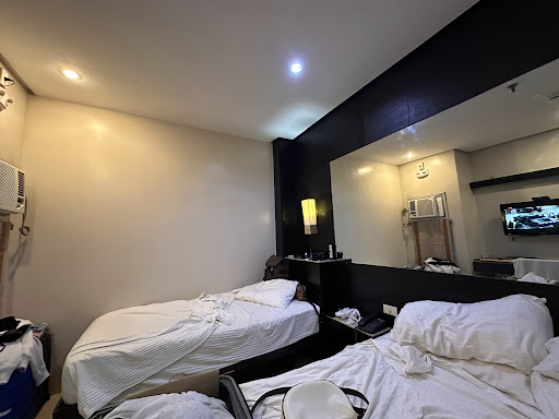 Read moreThere are many things to say about this place. First of all and the most important is their careless rude staff. Day shift or night shift does not matter, staff are hopeless. The promised carpark never existed, the only 3 bays are always full and staff or hotel managers are using them. There is no carpark around and you have to go far to park and pay 100 pesos per night. Guards are not helpful at all. Rooms are very small. Air condition is situated just about half a meter from your head!!! Outside lights lit your room all night long and if you like a dark room to sleep then you can't. First day I ordered breakfast at the lobby. I asked if the cappocinno is a real one and not a 3 in 1 and they confirmed it. When I received my cappuccino it was a 3 in 1 and they charged me 105 pesos plus 10 percent. Altogether their terrible breakfast cost my 380 pesos which I could pay less in a cafe and get a great quality and service. Check in and check out is slow and each time just to get your keycard you need to waste a few minutes. Once I was standing for more than 10 minutes and when I said I am tired and teed to go to my room, the rude staff told me to wait. Managers should add more staff and obviously one is not enough. In occasions they were 3 or 4 but sitting in the lobby checking their facebook or their papers and no attention were paid to the hotel guest and their needs. Do not go there and do not waste you...