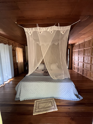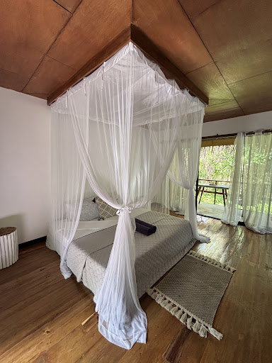 The bed was comfy and there’s no AC, but the fan kept us cool in the December weather. The bathroom is connected to the room but is fully outdoors, so do expect some creatures and bugs at times!