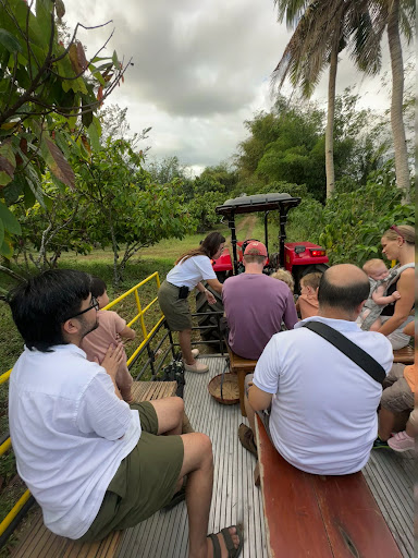 We rode the tractor around the farm and learned about their cacao and mango trees. We got to taste some cacao tooâsweet like mangosteens. After that, we fed some rabbits, pigs, goats, and chickens. Our baby enjoyed this a lot so we fed them again the next morning. Saw some huge cows too with their calfâhi Salomeâand some kilyawans while lounging in the duyan.