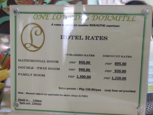Read moreThis dormitel is situated near a mall, a good landmark. Also located around the wet market area so there is foul smell in the vicinity. I came at 12 and the security assisted me with my key to the room. The room is spacious enough, the aircon is cold though there is crazy noise, and the bed is good. There is a cabinet, a tv, and a small fridge. The cr does not have a bidet, the heater looks old but it makes the water less cold. There is a small bath soap, shampoo, and tissues. This dormitel is good for travellers who just needs a place to sleep. Please note that the elevator is closed I think around 11pm and opened...