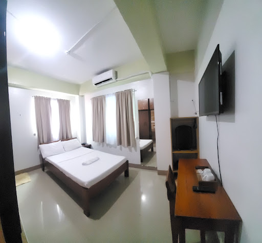 Read morePros: Clean room with table, chair, cabinet with hanger, mug with coffee sachets, slipper and 2 each pillow. Organize CR with bidet and hot and cold shower. Split type aircon. Wifi is ok. Grocery and pharmacy downstairs. Nearby eateries and canteens. Along highway. Near market and walking distance to capitol. Friendly and accomodating staff. Free cold and hot water (dispenser at the hallway).