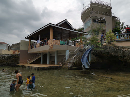 Now for the swimming, at first it was great, we arrived at high tide and the waves were crazyyy it was very thrilling and fun! We even rented googles for 100 pesos, we rented 2 for 200 pesos, theres certainly better places to snorkel but this place had a lots of fish, we saw a blue 1 black and even pufferfish! But be careful we saw 3 jellyfishs thankfully we didnt get stung.. The sea it self is rocky but they built a platform under the shade for the kids and if u just wanna chill at the shade. Unfortunately 1 of the slide was close the big 1 too, only 1 slide was opened.. that's pretty much all there is to say about me and my families swimming experience..