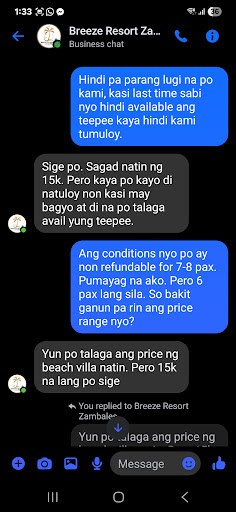 The fact that I personally booked 3 days and 2 nights for them. Good for 6 pax and they wanted me add extra 500 pesos was fine. However they only stayed for 2 days and 1 night and still had to add 500 pesos is unreasonable.