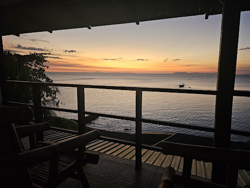 Read moreWe visited in June, so this is the low season, and the place probably feels very different when full. The diving sites and the sea conditions, we are told, are very different in the high season. In June this side of Anilao can get rough conditions, so at times we had to swim to and from the dive boat because the waves were crashing too hard for the boat to get onshore. At other times, they booked a jeepney to take us back to the resort if it had gotten really bad. The pros: *The amazing three dive guides: Laura, Dang and Aphol, the latter being our guide on most dives. He has a great ability to find creatures, and he has a great personality. Laura and dang were super friendly and excellent guides as well. The kindness of all the staff, from the security guard to the reception staff to the waiting staff. They could not have been kinder, more welcoming or friendlier. *The diving is phenomenal, with a mix of corals and muck diving and a great variety of sites. The guides usually asked us what we were in the mood for, coral or macro photography or a mix, and would do their best to select dive sites that would awe us. Success! In this low season during the week, there were so few of us that we were able to enjoy the little pool, hammocks, open air little restaurant at our leisure in a very serene, quiet environment, reading the fish identification books and enjoying the ocean views. Hey are hoping to expand, though, so I am not sure the place will have the same atmosphere and it may feel cramped. The restaurant right now has only 5 tables of 4 plus the bar. I hope it stays small and âfamily styleâ. On two occasions, when the sea was really rough, instead of coming back after two morning dives for lunch, they organized a BBQ picnic (700 PhP) on a beach in the calm waters area where we were diving. This was so much fun! The cons: ⢠If you are allergic to cigarette smoke, there seems to be no rule against staff / customers smoking, so at times in the middle of dinner I had to leave my table and my food until they were done or the wind changed directions. Some of the staff are considerate and vape instead, which is a little less harmful, but at other times they will switch back to cigarettes. ⢠There is absolutely no grocery store or restaurant anywhere along the road that runs behind the property ( except for a little place/ shack called OMG which we did not want to try, as we wanted to make sure to not get sick and enjoy daily diving. So you are stuck with the limited offerings of the onsite restaurant for breakfast (included), lunch and dinner. No fish on the menu, a big bummer for me. Prices are about 30 % higher than the identical dishes (quality wise too) we had in Sabang the week before. ⢠Orders can get messed up and service is slow, so if you are planning on diving after, take this into account. ⢠Twice during our stay they forgot to clean our room. No night stands so you have to leave your stuff on the floor by the bed. There is warm water in the shower, but no hot water. ⢠No restrooms at the dive shop level so you need to go all the way up to your room (dripping wet) after diving. Laura told us they are planning on installing one, as the resort is still very new so they have not completed...