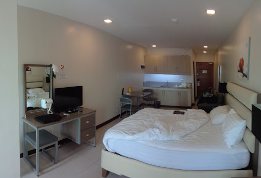Read moreWe stayed here for two weeks. Clean, big rooms, big comfortable beds, balcony, strong WiFi, very kind and helpful staff, rooms have kitchen set up with cabinets and a table with two comfortable chairs, a loveseat couch/sofa two bedside tables with lamps large flat screen TV wardrobe desk with large mitrtor, drawers and a comfortable seat for computer use, strong modern air-conditioning ... bathroom is well laid out with full glass separation from shower area. There is a 7/11 on the ground floor the location is convenient in a safe area. Close to many street food and siri-siri shops walking distance from ShopWise KFC MacDonald and the best Bacolod BBQ chicken...