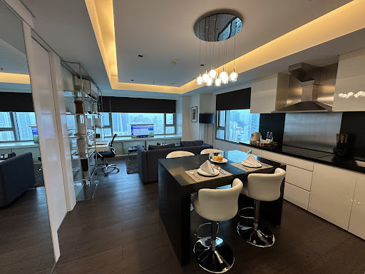 I've been hotel hopping in Makati during my 5 wk trip in the Philippines to find the best places to stay. Alpha Suites declares itself as a 5 star hotel, but in my honest opinion, it's more of 4 stars. The staff are all excellent, no complaints there. The front desk graciously allowed us to check in early, as I didn't remember the correct check-in time is 2pm. Everyone is always friendly, smiling & willing to go out of their way to help you. The location isn't w/in a comfortable walking distance to restaurants or shopping, so there isn't a shortage of amenities available, in house. There's a pharmacy, few stores (it's under construction) & budget friendly food options, all located in the Alphaland Makati Place, which is accessible via the ground floor, through an adjacent corridor (that passes by the hotel's office). Rustan's supermarket, on the lower level is SUPER convenient. Prices are very reasonable. I was happy to find their liquor section had ample choices. We also ended up cooking a few nights since their fresh foods are irresistible. It was a joy to cook in the kitchen as the electronics (especially the stove) are user friendly & kitchen tools-pot, pan, rice cooker, etc., basically everything you need, is at hand. The granite countertop is very pretty. I also noticed the lamps on the nightstands in the room had granite elements (fancy!). There is an in-unit washer/dryer, & that was one of the main reasons why I chose this property. Everything you need to feel at home is at your disposal. Appliances are Smeg & Electrolux. Air conditioners are LG inverter V models. These are considered high end in the US, where I'm from. The automatic retractable shades system, Blum soft close drawers, touch push cabinets mechanisms in the kitchen, drop down TV in the living room area, modern furniture & furnishings, cove lighting, etc., are all a nice touch. And when we didn't feel like cooking, (which was many times), there are 9 themed restaurants & bars on the 4th & 6th floors. We enjoyed the food at all of them, especially Balesin. The gym facilities are clean and modern. The pool area is impressive to look at. Everything in this hotel is clearly all high end. There was a LOT of money poured into this building. This is why I can't understand where this hotel failed. It's like encountering a beautifuI woman, but she has bad breath. I've stated the good & now I'll share why I don't feel this is a 5 star hotel. When we came in on the 1st day, there was a mildew scent that we noticed when we turned down the air conditioner since the initial temp was too cold for us. Also, when I opened the cabinet underneath the kitchen sink (to throw out my trash), there was a sewage stench that eminated so I told everyone not to open it. I also forgot to mention, that as gorgeous as the lobby is, there was a strong smell of sh*t, as soon as you walked in. I just attributed this to a fertilizer application for the greenery in front, but noticed the same smell the next 2 mornings when I went down. I should have taken this as an omen but I paid in advance for this room through Agoda (there are no refunds, so I will just stick it out & continue to update as to the reasons why this isn't a 4 star hotel) After the house keeping came in from the first time, the funky smells in our room were thankfully eliminated. The carpet in the bedrooms need to be ripped out. They are old, stained, stinky & I always made sure to wear slippers. The bathrooms were nice, but upon closer inspection, there is dust and cobwebs in crevices that are visible. The grout needs to be thoroughly cleaned, since mildew has taken residence & discolored it. When you shower, the drain isn't very good at collecting so over 1cm of water will pool at your feet. I have to wear H2O shoes bc I'm not confident about the cleanliness of the shower floor &especially since there's so much water at your feet while showering. If using the toilet, make sure there's at least 5 mins in between uses, as it takes rather long for the bowl to fill up. There are drain flies as another...