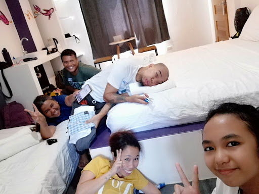 The location is great. Close to the D*Mall and stores where you can walk your way through to Station 1 and 2. The room is clean and organized. The bed is wide and comfortable, great for 5 to 6 persons in a room. They have a small ref for chilling some food.