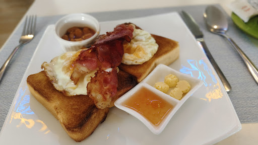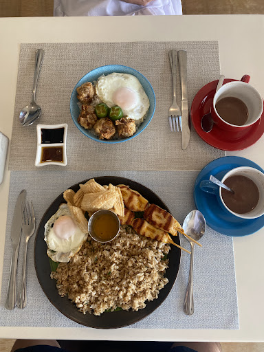 Amenities are modest but well-chosen. There’s an indoor pool, a rooftop dining area with a great view, and free drinking water refills. Breakfast is included and surprisingly satisfying, with choices like tapsilog, humba, or Spanish omelet—always served fresh. While the pool is on the smaller side, it’s a nice place to cool off or relax between island activities.