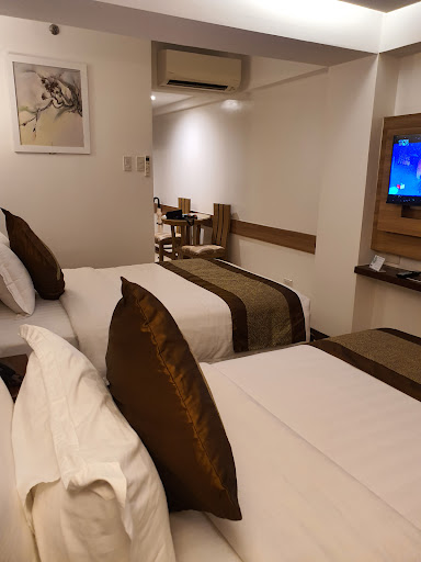 Lets go to PROS: courteous and helpful staff malinis. No joke di mukhang ospital ang hallways. It doesnt have that creepy vibes na sanhi ng lockdown decent breakfast buffet and take note, wala kang masyadong nilalakad just to get to their restaurant kasi again, di naman tatlong building dadaanan mo or more. di masyadong crowded so you can be sure the help you need gets done away from the noisy areas has their own pool. clean toilet and bath/rooms they have a massage theraphist to do room service reasonable prices ng food. And in fairness masarap pagkakaluto. You should try their pizzas.