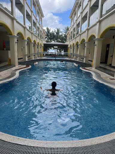 Read morePros: located in Sta.3 that iS calmer/quieter, Front beach Visited during n October wherein the beach iS so clean and calm weather One of the cheapest hotel that iS front beach, with long Pool(not heated but its fine) and buffet simple Filipino breakfast. Room small 2 Bottled water but I hope they have water dispenser for refill. If not mistaken it only takes 10-15 minutes walk in the front beach if you want to Go to Dmall. Pillows are so fluffy. Bathroom CR are so bright that is great for girls to DO their make up. Strong hot/cold water pressure in rooms Ref and heater are also available Many restau and convenience stores nearby Staffs are helpful and they always wear a smile🙂