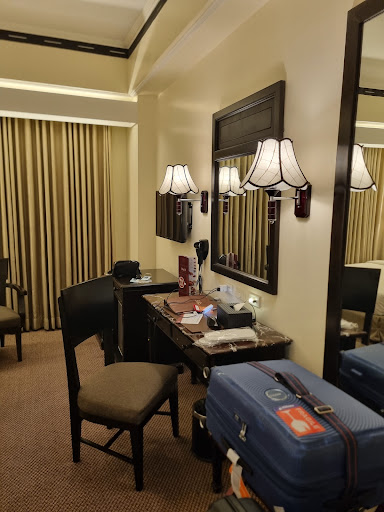 There's a table suitable for laptop work. Not many power outlets in the room, but at least the one I could find is next to the table! But only a single plug plus a USB charging port. Beds are comfortable. Firm but not uncomfortably so. Bedding is well-used but crisp and cool. AC is adequate to cool the room nicely in about 15 minutes or so. Your electronic room key goes into the master control slot near the door to activate AC and electricity to the room. Tere's a flashlight located on your way out of the room in case of emergency.